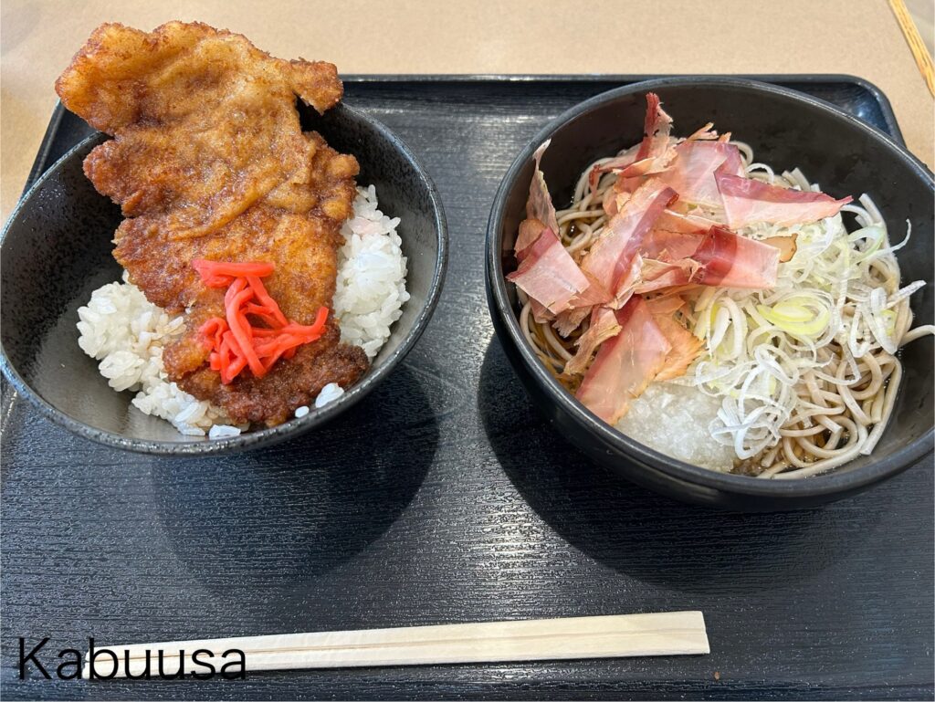 かぶうさが注文したのは、ミニわらじカツ丼 小蕎麦セット1080円。