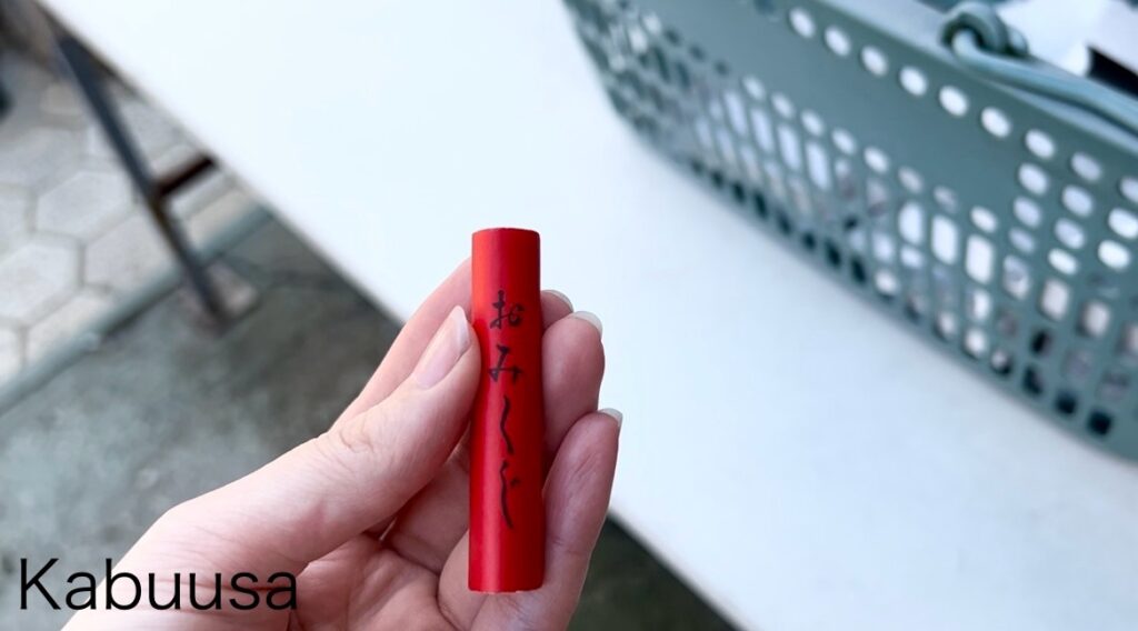 赤い筒状の物体が御神籤でした。