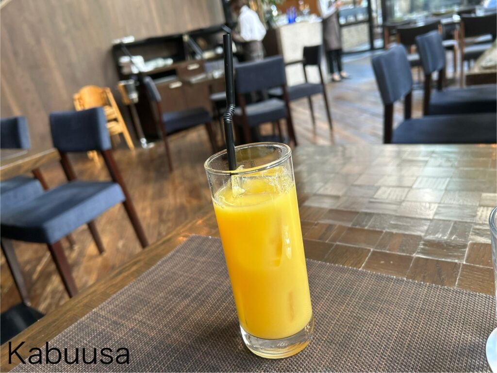 まず、初めにドリンクセットのオレンジジュースが来ました。