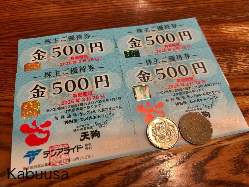 テンアライドの株主優待2,000円分と、101円のお支払いでした。