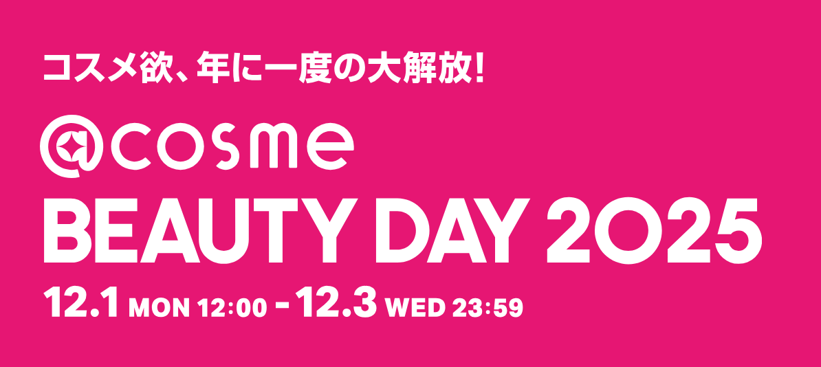 @コスメBEAUTY DAYとは、@cosme公式通販サイト「@cosme SHOPPING」と全国の@cosme店舗で年に1回開催されるコスメ好きにはたまらない大型セール・イベントになっており、限定アイテムやお得なポイントバックがあるのが魅力です。