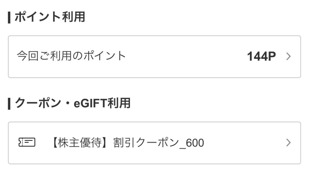 合計3回のお買い物で、株主優待割引600円×2回と1,000円×1回の2,200円分がお得になりました!