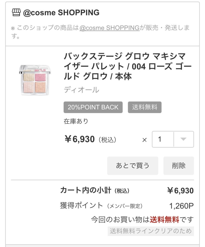 今回のお買い物で、@コスメBEAUTY DAYのポイントバック 1,260ポイントも獲得!✨