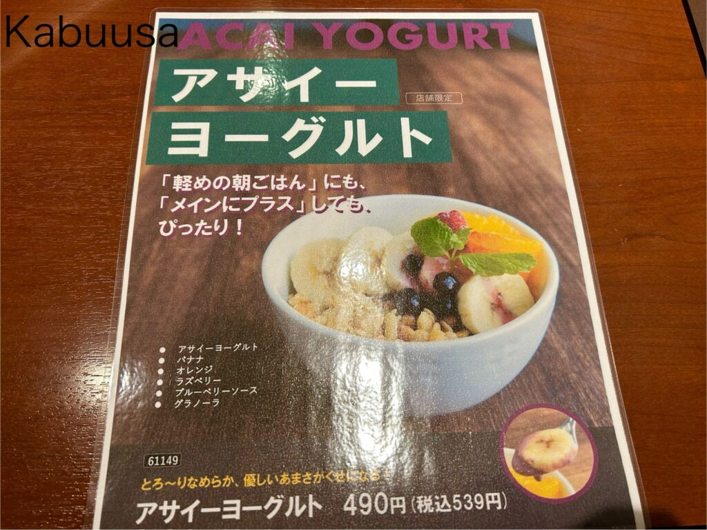 今回、かぶうさが訪れた時は、デザートアサイーボウル 650円、アサイーボウル&パンケーキプレート 1,180円の2つのアサイーメニューがありました。