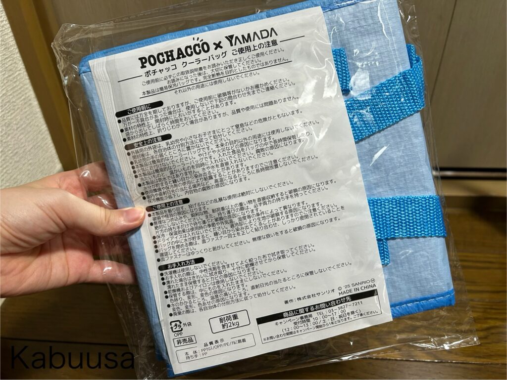 また、かぶうさが行った日は、『夏の特別ご招待会』実施期間2025年6月20日(金)~7月6日(日)が行われており、ハガキまたは、ヤマダアプリに案内が届いた会員様限定特典として、エントリー後、期間中2,000円(税込み)以上お買い上げのお客様にこちらの『ヤマダオリジナル ポチャッコ クーラーバッグ』(下記載の写真)を貰うこともできました!