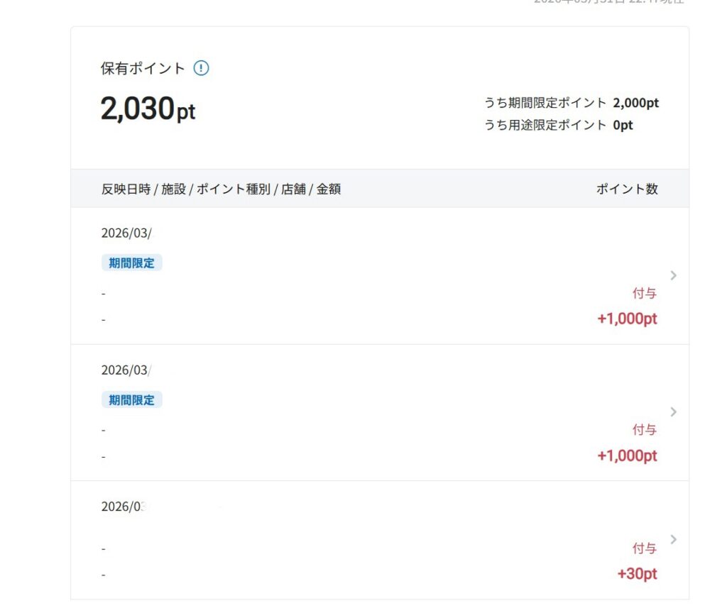 三井不動産株式会社(8801)の株主優待の優待ポイント(三井ショッピングパークポイント)の有効期限が3月31日と迫っていたので、慌てて、駆け込みで利用しました。