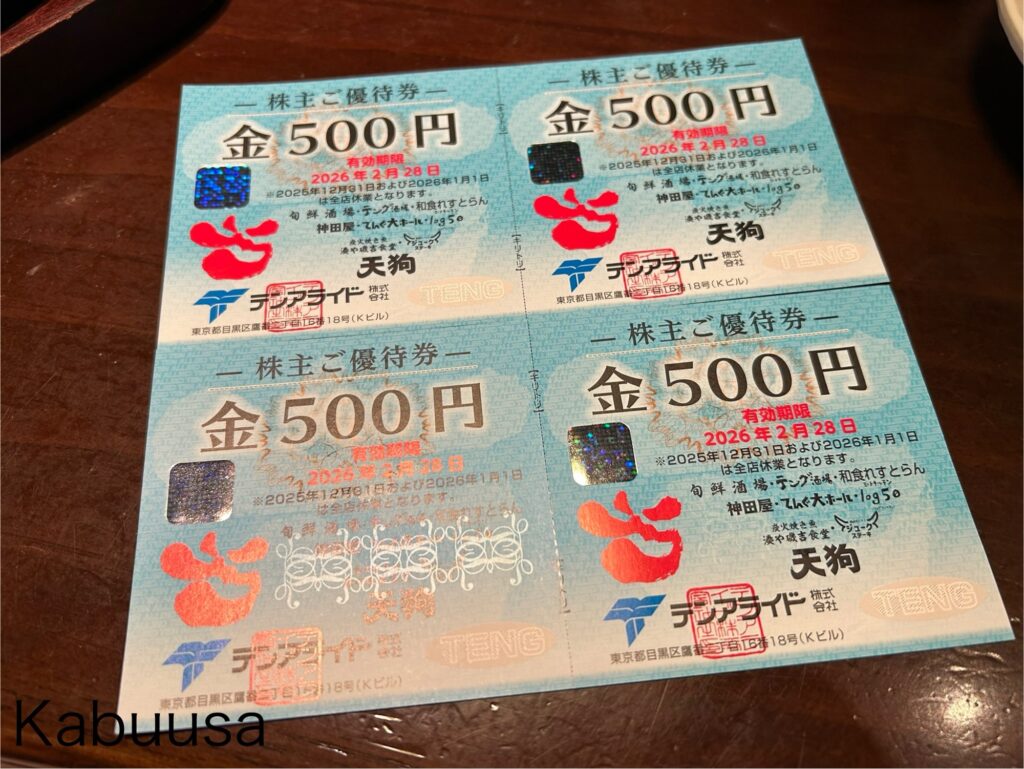 これにて、かぶうさが持っているテンアライドの株主優待はすべて使い終わってしまったので、また届くのを楽しみに待っています。