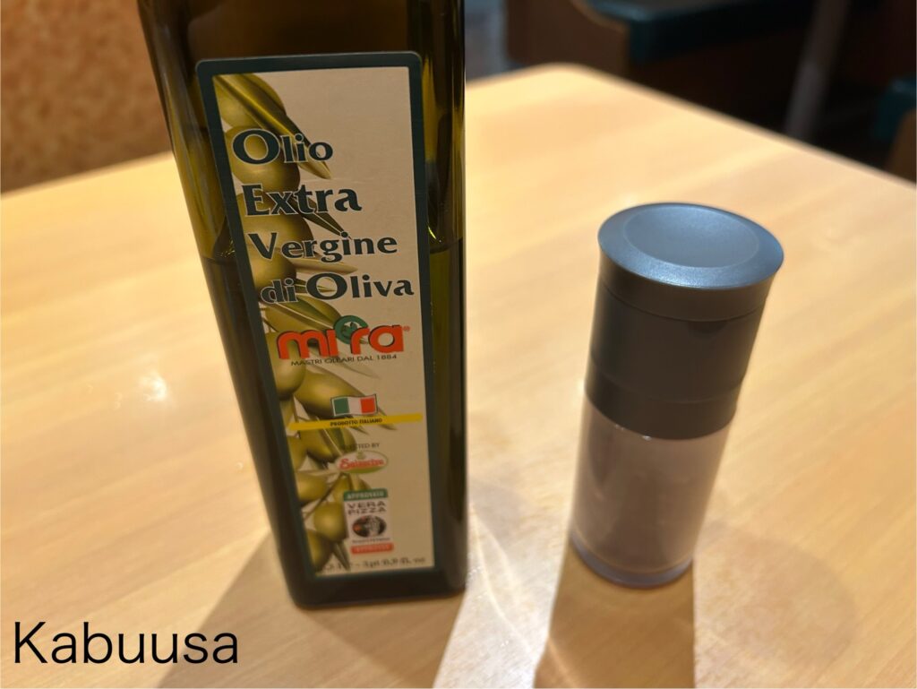 調味料コーナーにあるオリーブオイルとブラックペッパー(無料)を入れると更に美味しくなりますよ!