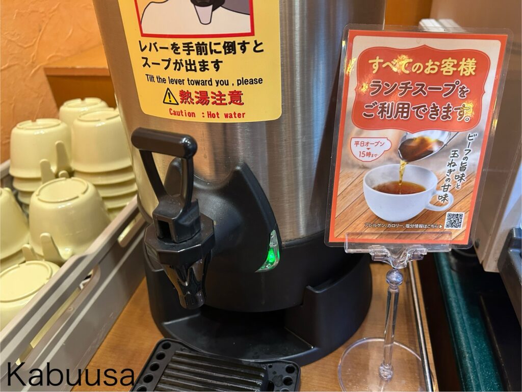 ランチタイム限定サービスのランチスープは、セルフサービスになっています。