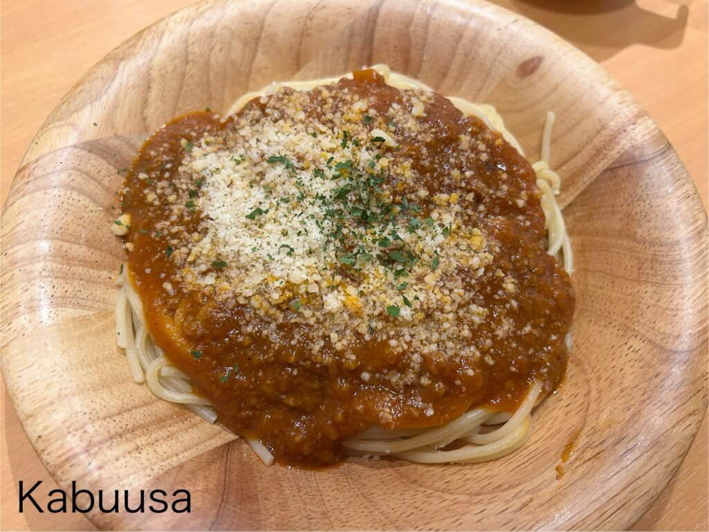 メインのスパゲッティは、「ミートソースボロニア風」にしました。