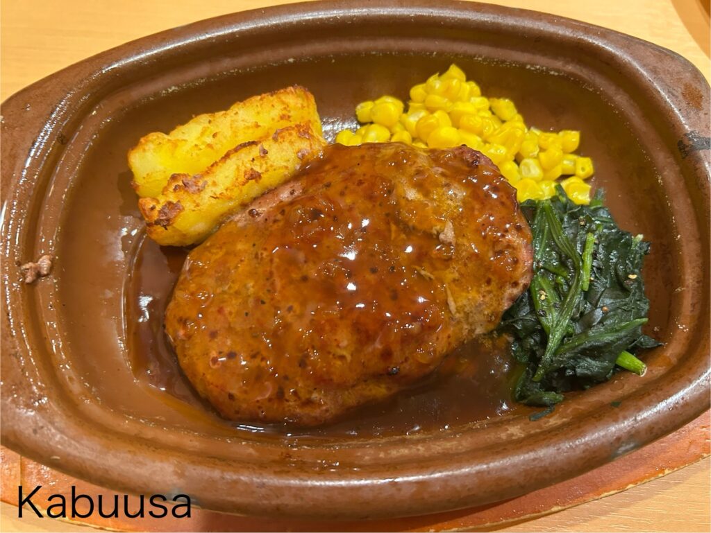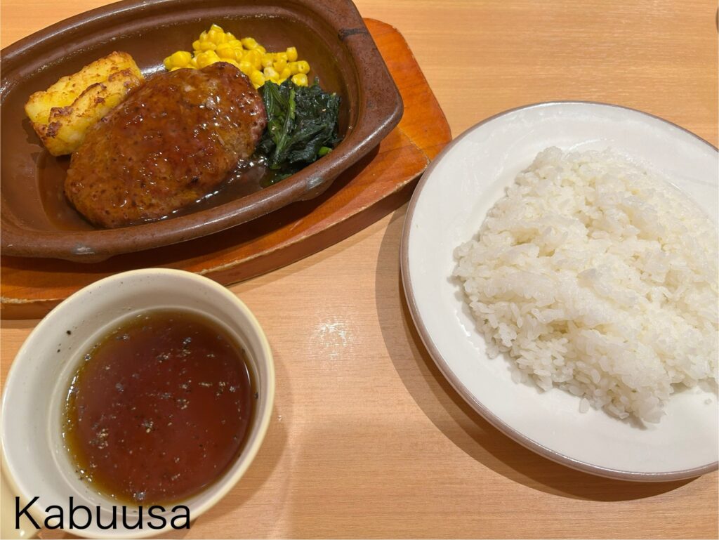 メインの牛100%ハンバーグは、オニオンソースハンバーグにしました。