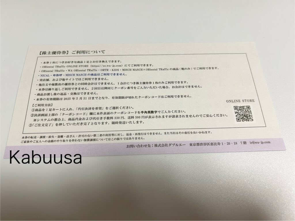 ①ORiental TRaffic オンラインストアで使えるお好きな商品(靴、バッグ、シューケア商品など)1点無料券