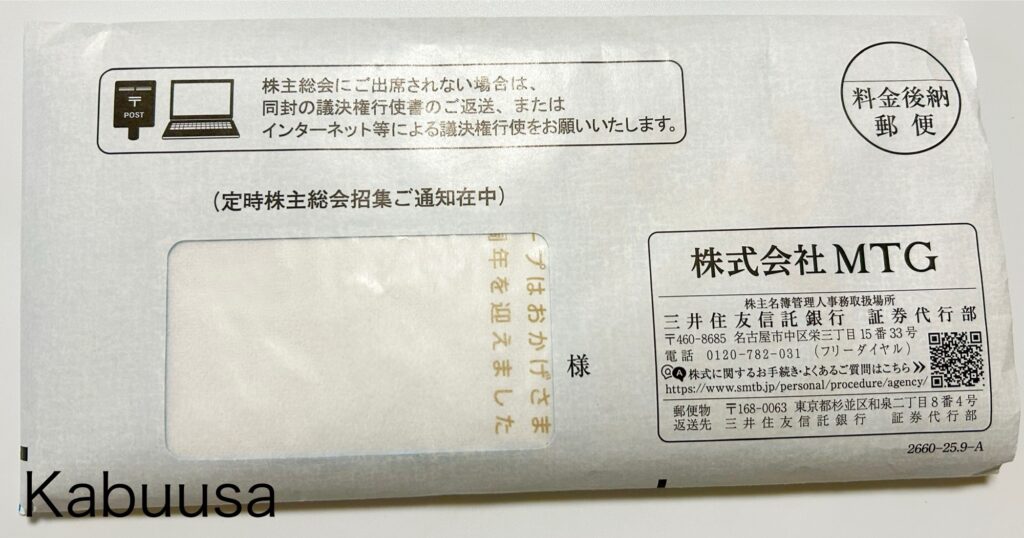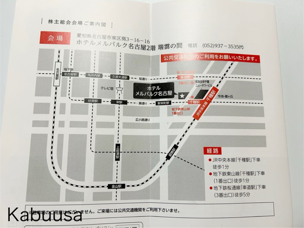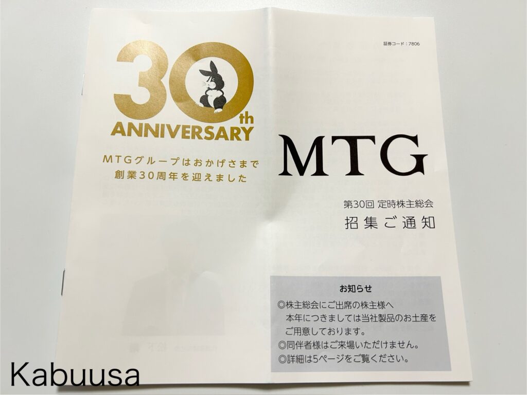 ちなみに、MTGの株主総会は、MTGの本社もある名古屋で行われるとのこと。