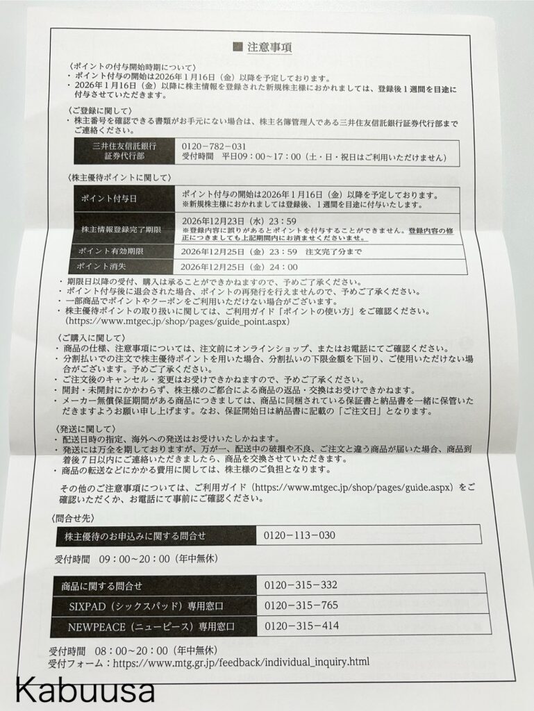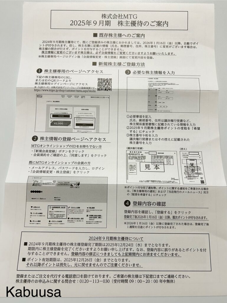 12月の上旬頃、株式会社MTGから、定時株主総会招集ご通知&総会のお土産情報。株主優待のご案内が届きましたのでご紹介します。