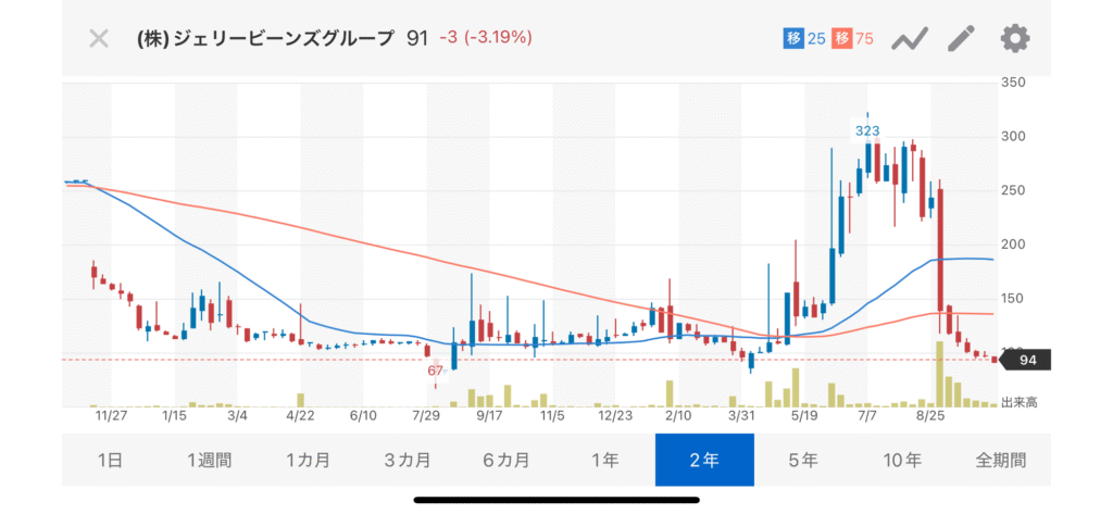 ジェリービーンズグループ(3070)の株価は、2025年10月17日現在 91円で、100株以上を保有する株主に、保有株数に応じて自社の株主専用サイトで利用できるポイントをいただける他、200株以上を保有する株主を対象に無料プレゼントがいただけます。