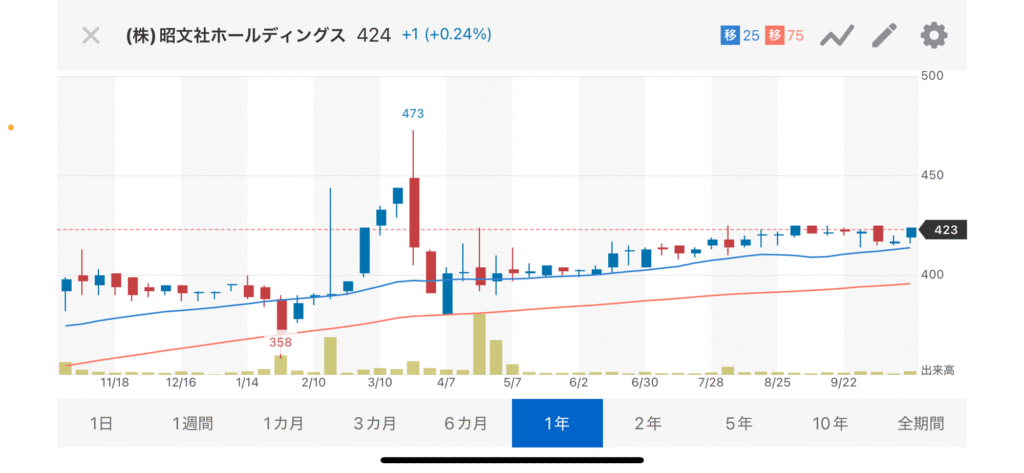 昭文社ホールディングス(9475)の株価は、2025年10月24日現在 424円で、100株以上を保有する株主に自社製品3,000円相当がいただけます。尚、2027年3月末以降は継続保有1年以上の制限が付くようになるとのことです。