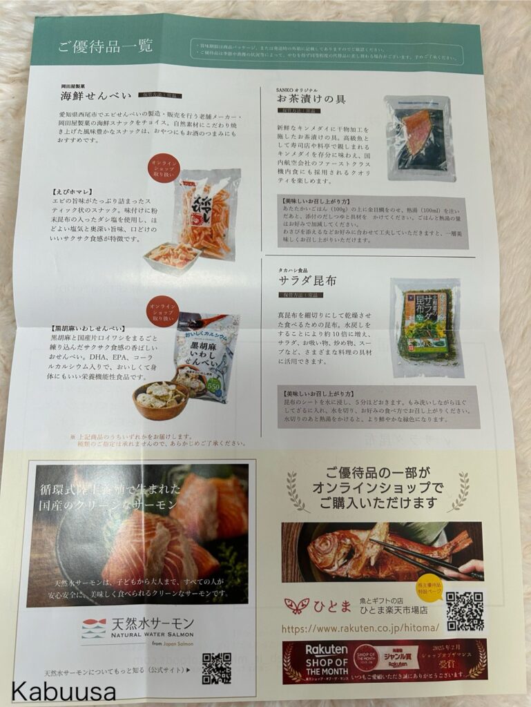 それでは、優待品を1点、1点 ご紹介していきます。