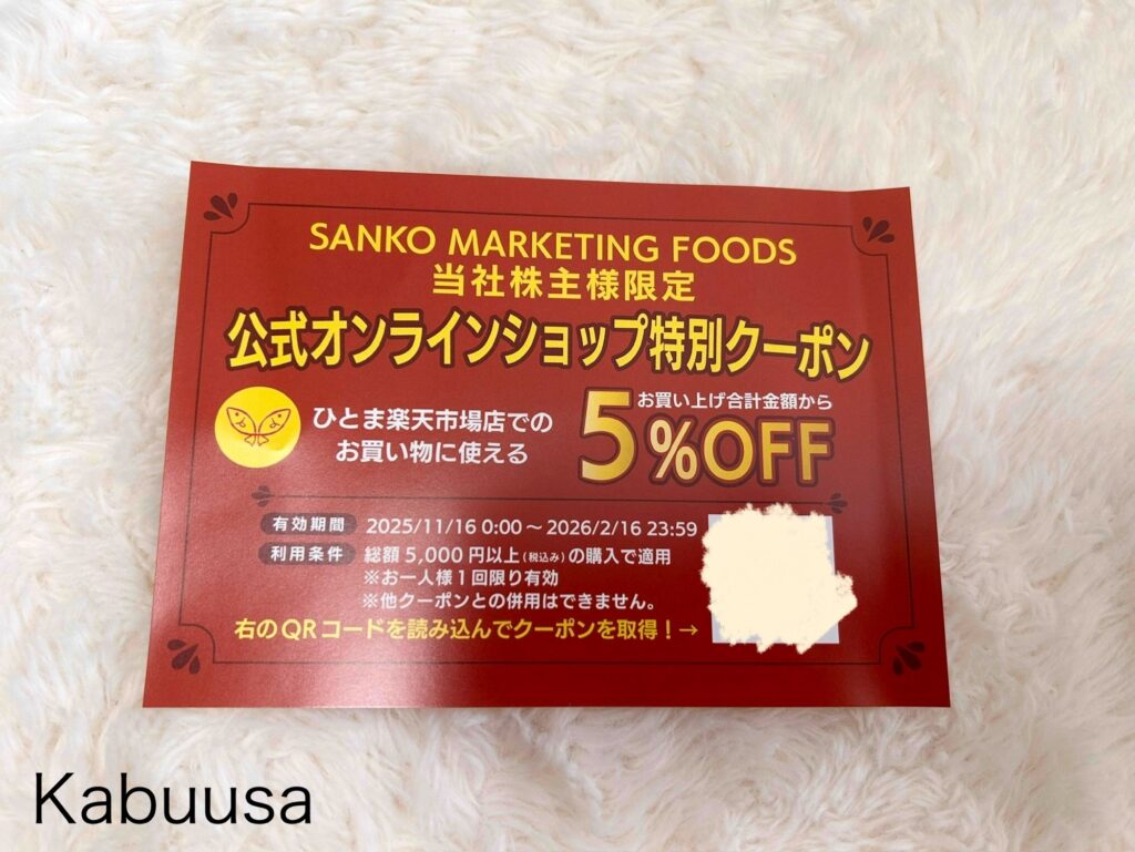 11月の上旬にサンコーマーケティングフーズから2025年6月末基準 株主優待品が届いたのでご紹介します。